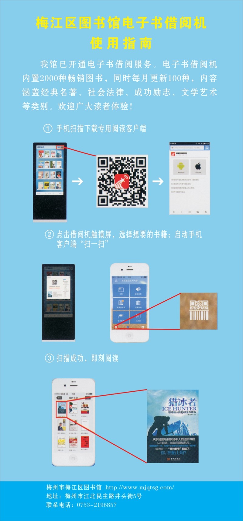 其中,设立的首家电子图书借阅点及“2015全民阅读推广活动——梅江区图书馆移动阅读进社区”活动大受红光社区干部群众的欢迎。区图书馆为该电子图书借阅点配置了一台“电子书借阅机”,借阅机内置3000种独家授权正版图书,每月自动更新300种图书。读者下载移动数字图书馆客户端后,即可享受移动借阅服务。丰富的数字资源,如电子图书、视频、课程、期刊、学术论文以及适合各个年龄的个性化订阅频道等等,能满足读者不同的选择。图书馆提前定制了6000多张“移动数字图书馆阅览证”,并聘请专业技术人员对江南街道干部与各社区群众,进行移动图书馆的介绍与使用方法等专题培训,江南街道干部与各社区群众80多个代表参加了专题培训。培训结束后,在图书馆工作人员与技术人员的指导下,用各自的手机在电子书借阅机前或在图书馆派发的“移动数字图书馆阅览证”上扫描二维码,下载移动数字图书馆客户端,现场体验数字移动阅读。除外,读者还可登陆电脑、IPAD等进行阅读。在场的干部群众在微信上“晒”出的消息更是吸引了不少场外的读者,他们纷纷要求体验一把“数字移动阅读”。