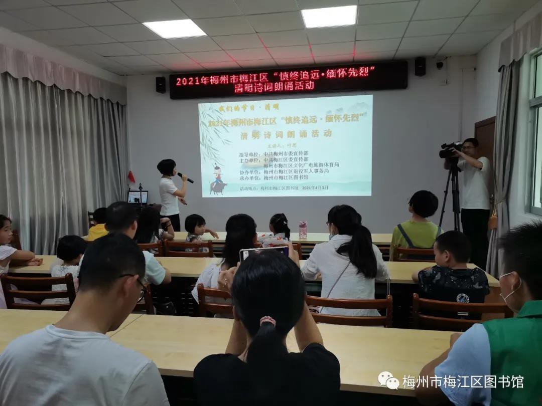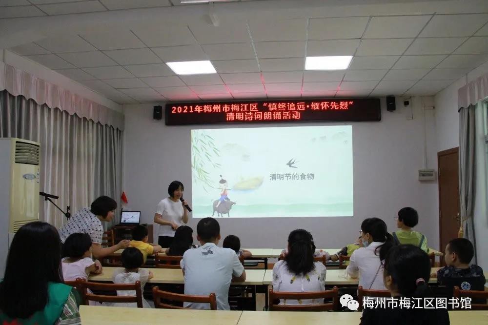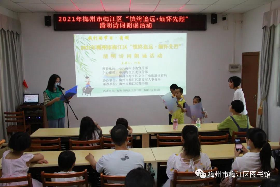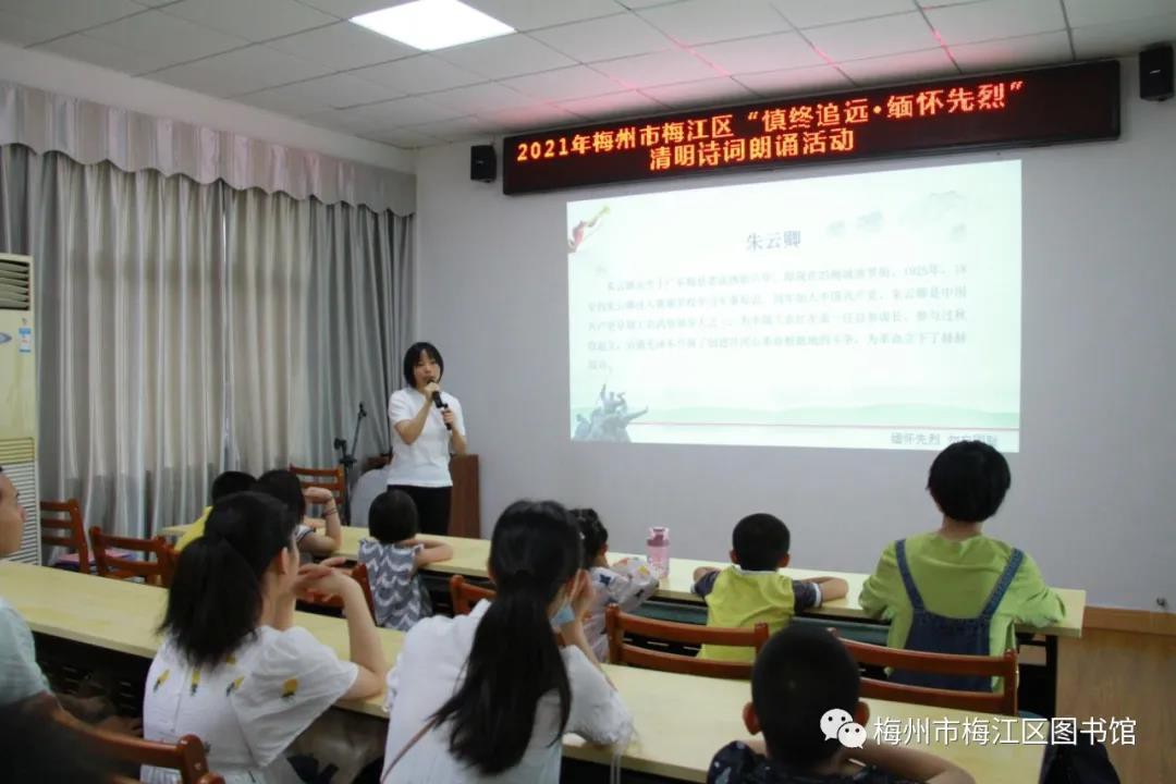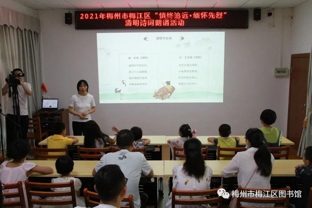为弘扬中华民族传统文化,引导未成年人学习党史和英模事迹,培养青少年的爱国主义情怀。梅州市梅江区图书馆4月3日上午举办了“我们的节日·清明”——“慎终追远 缅怀先烈” 清明诗词朗诵活动。